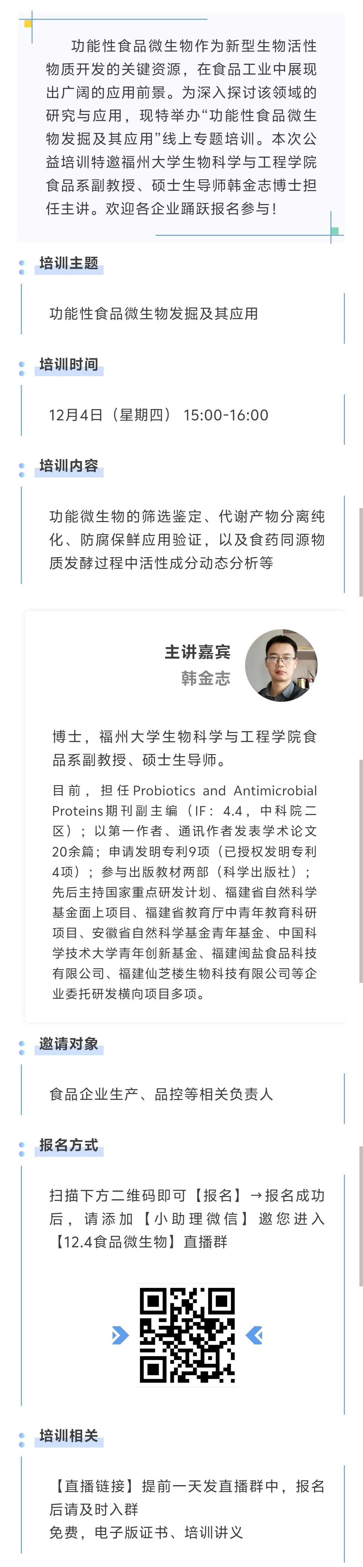 【线上公益培训】功能性食品微生物发掘及其应用,欢迎参加!